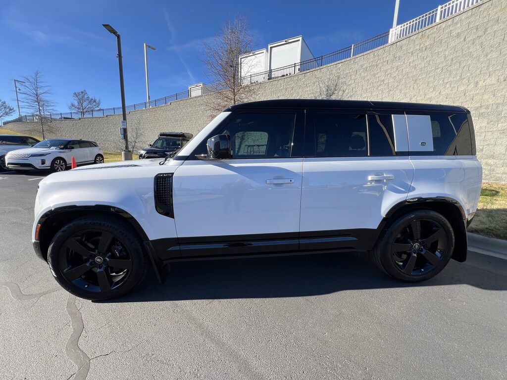 EXTENDED BLACK EXTERIOR PACK: gloss black fender vents, Narvik black hood checkerplate, gloss black Defender script and Narvik black front and rear skidpans, Gloss Black Front Grille, WHEELS: 22 GLOSS BLACK FINISH STYLE 5098: 5 spoke. Land Rover V8 with Yulong White Metallic exterior and Ebony interior features a 8 Cylinder Engine with 518 HP at 6000 RPM*. Maintenance Pkg Avail. Extended Service Agreement Pkg Avail. Wheel & Tire Pkg Avail.